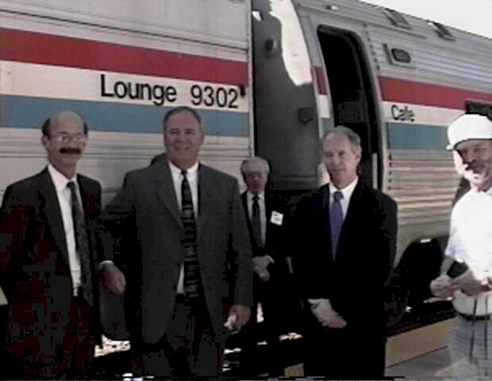Various Amtrak officials pose outside the Great Dome 'River View' in May 1998.
