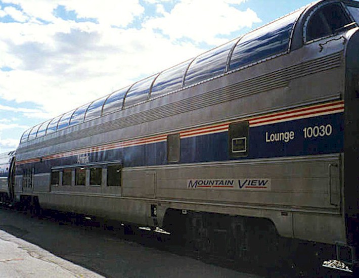 Great Dome 'Mountain View', re-numbered now as Amtrak business car #10030... and re-painted in Amtrak's Phase IV paint scheme.