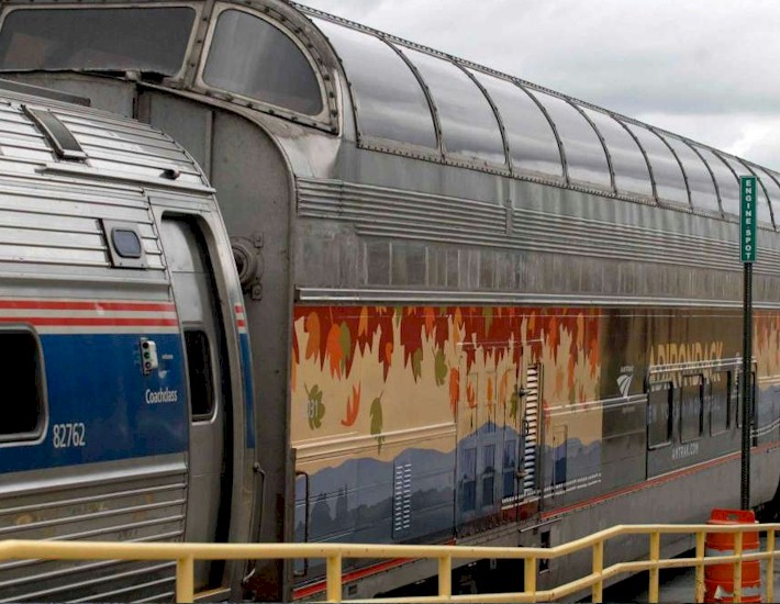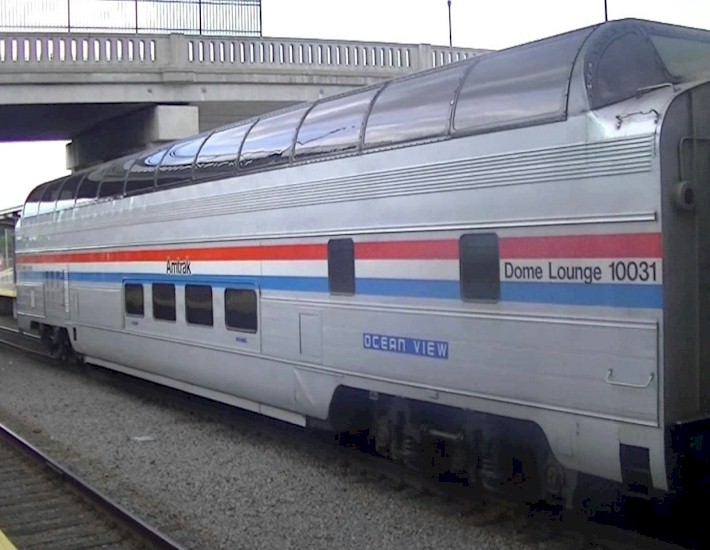 Great Dome 'Ocean View' in its current paint scheme (retro 'Phase III'); it was changed to his style in 2011 for Amtrak's 40th Anniversary.