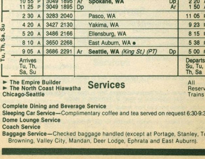 This 1978 timetable shows dome cars still in use on the Empire Builder.