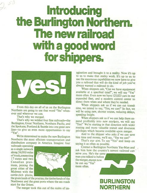 The Burlington Northern continued to operate all six Great Dome cars on the Empire Builder route, which it now fully inherited from the Great Northern. Previously, the Empire Builder operated on the Burlington from Chicago to the Twin Cities, before switching to the Great Northern west of the Twin Cities.