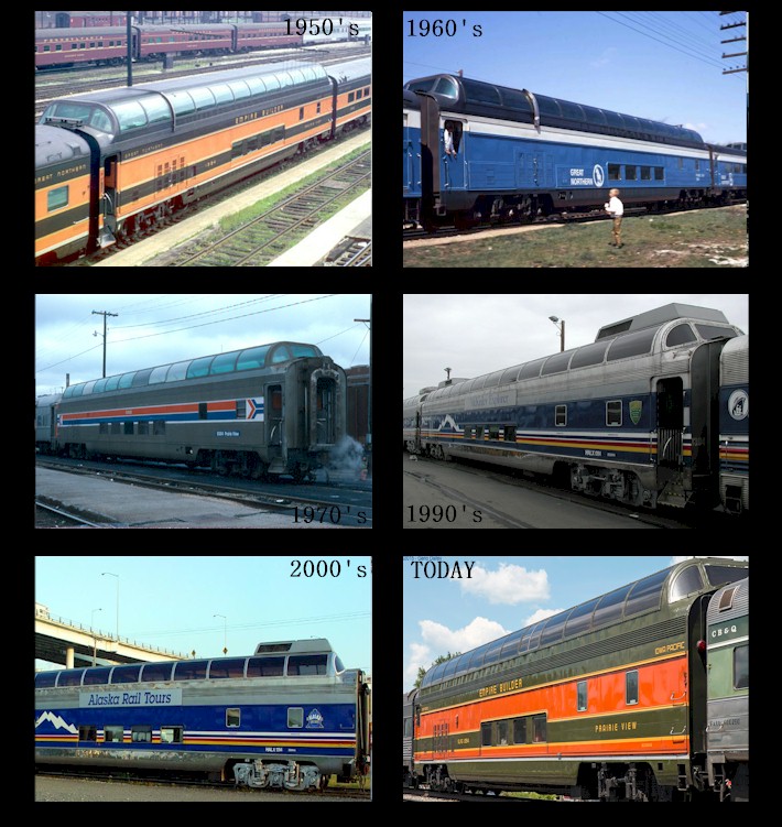 Great Dome car "Prairie View" was built for the Great Northern Railroad in 1955, and was originally given GN Car #1394. For the 15 years it was part of the Great Northern, this car was mainly used on the Empire Builder line between Chicago and the Pacific Northwest. In the late 1960's, it was re-painted in the Great Northern's new blue paint scheme. When the Great Northern was merged with other railroads in 1970 to form the Burlington Northern, the ownership of this car was transferred. The Burlington Northern continued to run this Great Dome on its Empire Builder train. Just about a year later, ownership was transferred to Amtrak, when it took over most of the Burlington's passenger train service in May 1971. This car was re-numbered as Amtrak Car #9364. It remained in service on the Empire Builder under Amtrak, too, until being replaced by bi-level Superliner equipment in October 1979. "Prairie View" was temporarily retired and placed in storage at Amtrak's Los Angeles yards. Over the next four year, it received serious damage from vandals, rendering the car too expensive to fix. In 1984, Amtrak decided not to put "Prairie View" through a renovation that would have made it operate on head-end power. Instead, Amtrak retained ownership of "Prairie View" for use as a parts car. Throughout the 1980's and early 1990's, Amtrak's mechanical department slowly picked off pieces of this car for use on "Mountain View", "Ocean View", and "River View" which were running on the Auto Train. By 1993, all that was left of "Prairie View" was its shell. At that point, Amtrak put the remains up for a bid in a major surplus auction being held. The winner was Burlington Northern, who planned to refurbish the car and use it as a second business dome car to supplement "Glacier View". The planned refurbishment work never took place. When the Burlington Northern merged with the Santa Fe in 1996, the newly formed BNSF didn't need "Prairie View" anymore because it now had an ex-Santa Fe Big Dome as its secondary business car. BNSF sold off "Prairie View" to Holland America in June 1996. Holland America spent more than $1,000,000 to refurbish the car before it was shipping up to Alaska in May 1997. It was re-named "Deshka" and was used by cruise ship passengers who wanted to travel on the Alaska Railroad between Anchorage and Fairbanks. Ownership was transferred in late 2004 to the now defunct Alaska Rail Tours to be used in a non-cruise ship travel operation in Alaska. It was sold to Iowa Pacific Holdings in October 2009 and re-named back to "Prairie View" with its original Great Northern number. Since then, it has been used by Iowa Pacific for private rail excursions across the country. It spent much of 2019 as a dinner train car on the Iowa Pacific-owned Cape Cod Central Railroad. It was also used in October 2019 for the Autumn Colors Express (formerly called the New River Train) in West Virginia. There are reports the car is currently up for sale due to Iowa Pacific Holdings being put in receivership; asking price is $850,000. If you have any new information about "Prairie View", drop us an e-mail at board@railrangers.org.