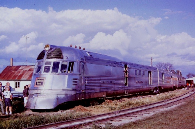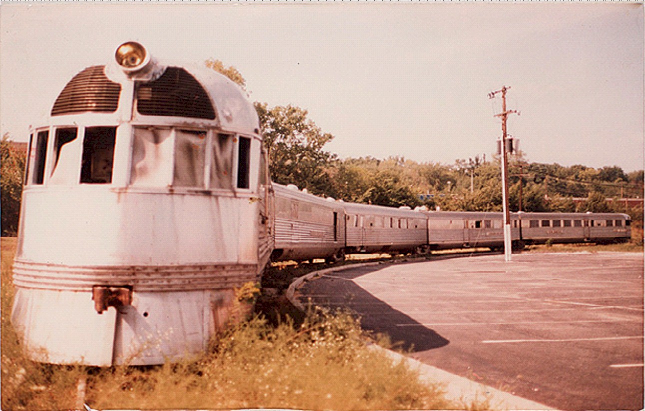 Here is a copy of a slide taken in Summer 1968 when the Mark Twain Zephyrr was on display at Midwest Central Railroad in Mt. Pleasant, IA. (Courtesy: Midwest Old Settlers & Thresher Association)