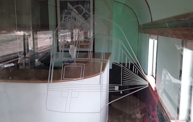 As promised on our Sunday, May 16, 2021 weekly video update, here are the photos of the completed "Effie Dean" curved bar area and glass panels. Join us for our next weekly video update on Sunday, May 23, 2021 as we show the carpeting and booths going in the car.