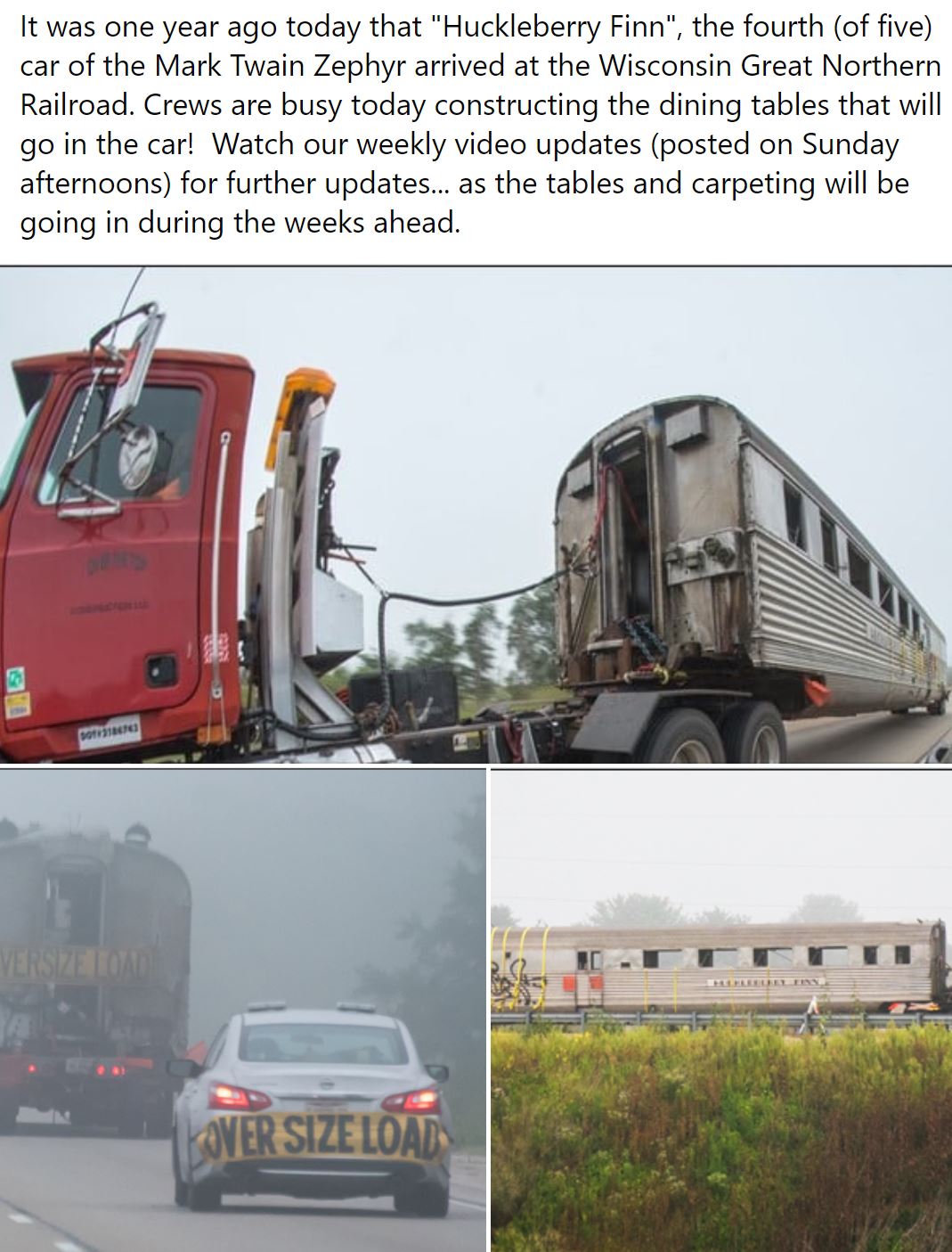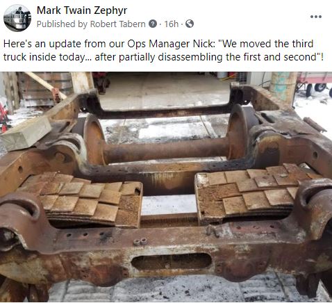 For those who do not have access to e-mail and our e-Newsletters, the Wisconsin Great Northern's Director of Passenger Development, Robert Tabern, will also be occasionally posting updates below as the railroad works towards making the Mark Twain Zephyr fully operational once again.