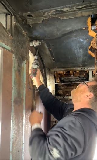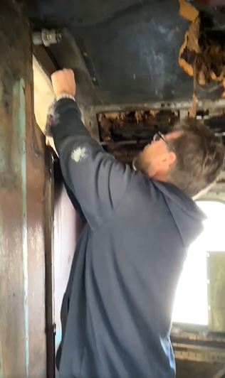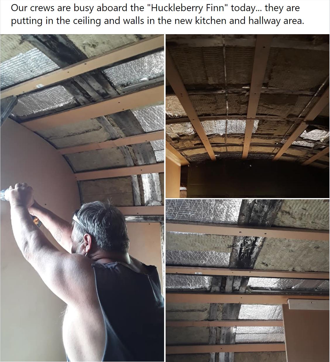 Lance and Phil have finished putting up 30 brand new metal panels in the engine room of "Injun Joe" today.
