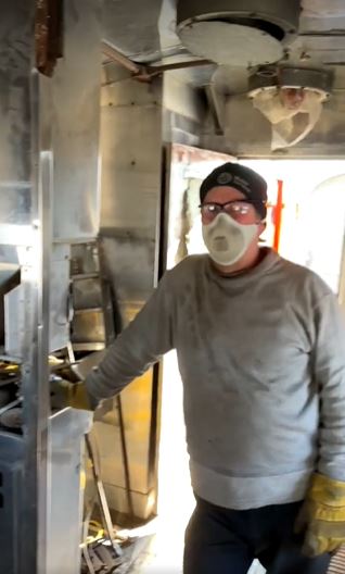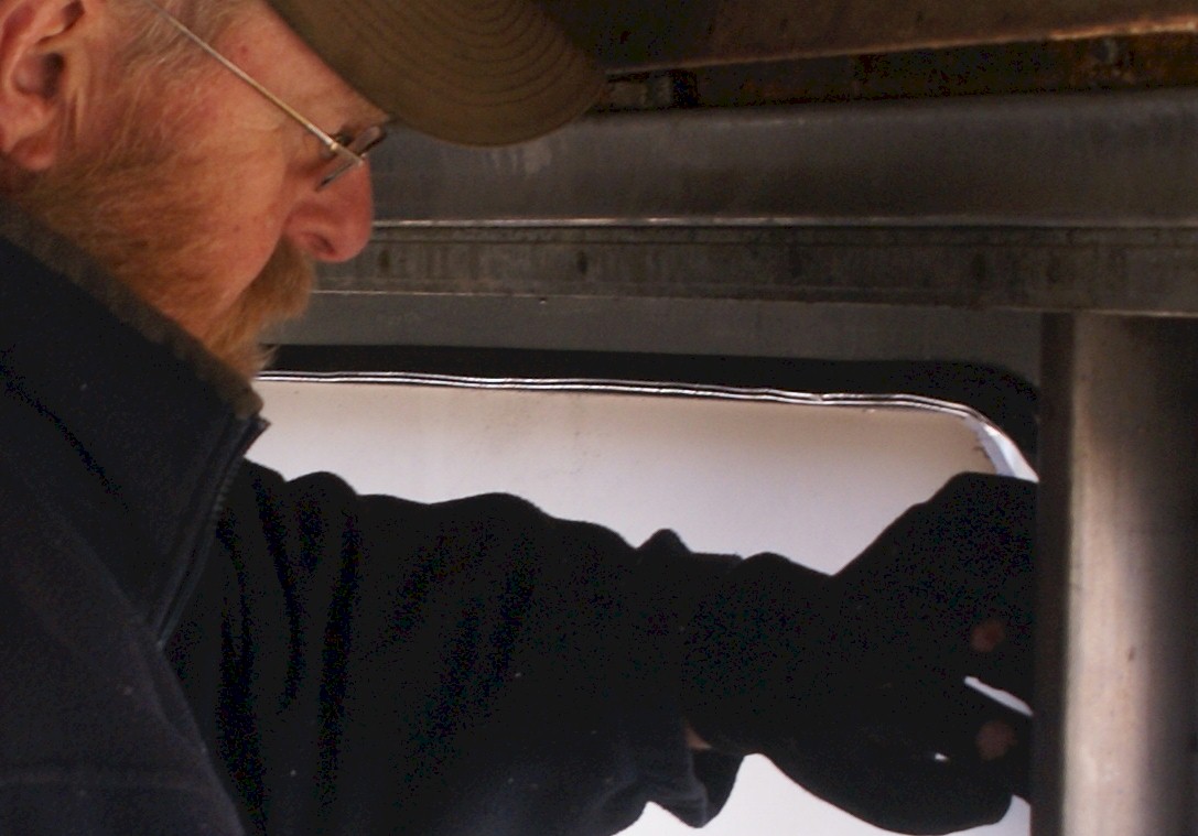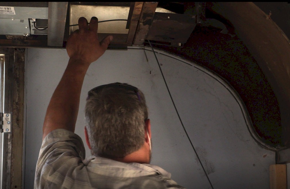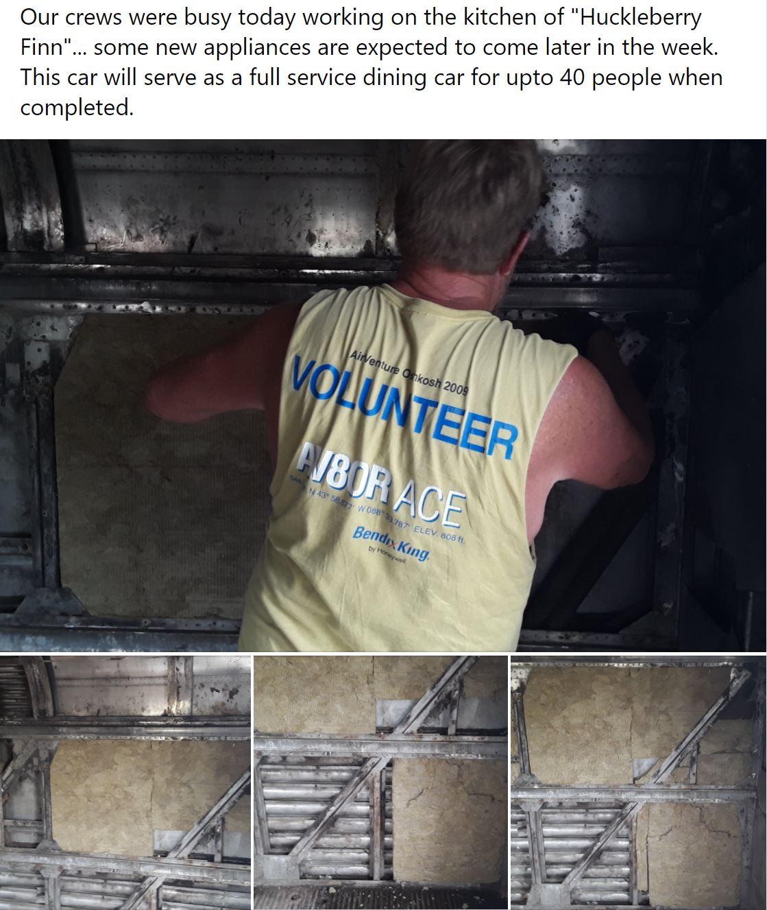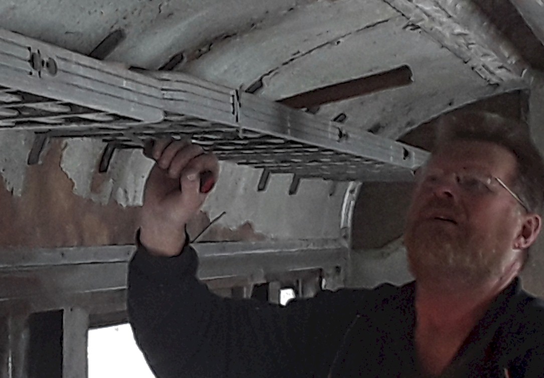 WGNRR's Phil Hedlund puts in new insulation in the "Huckleberry Finn" kitchen ahead of appliances arriving later in the week.