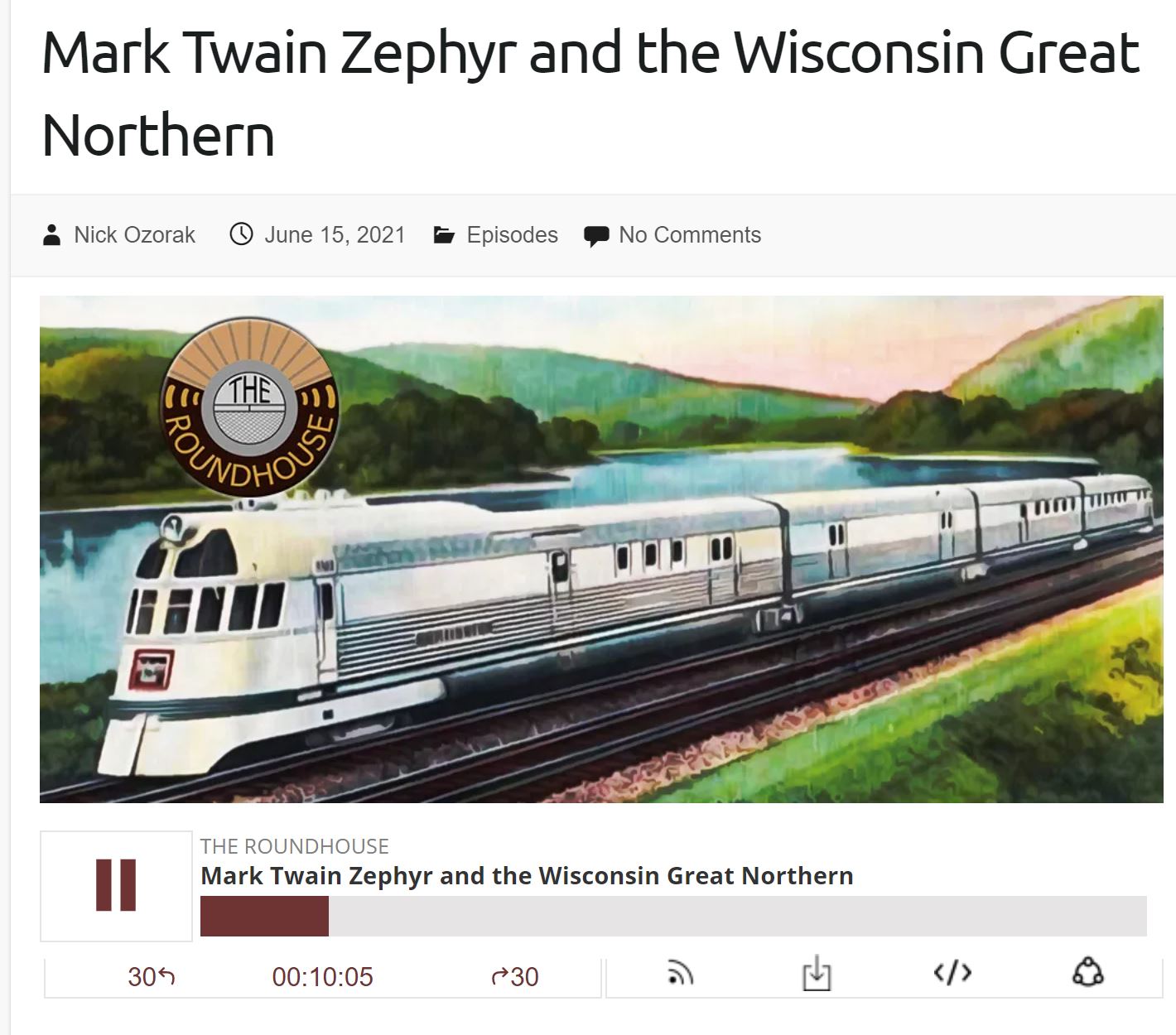 Nick Turinetti, the Wisconsin Great Northern's Operations Manager... and Robert Tabern, the Wisconsin Great Northern Railroad's Director of Passenger Development... engage in a more than one hour conversation with Roundhouse Podcast Host Nichola Ozorak about upcoming projects, including the Mark Twain Zephyr.
